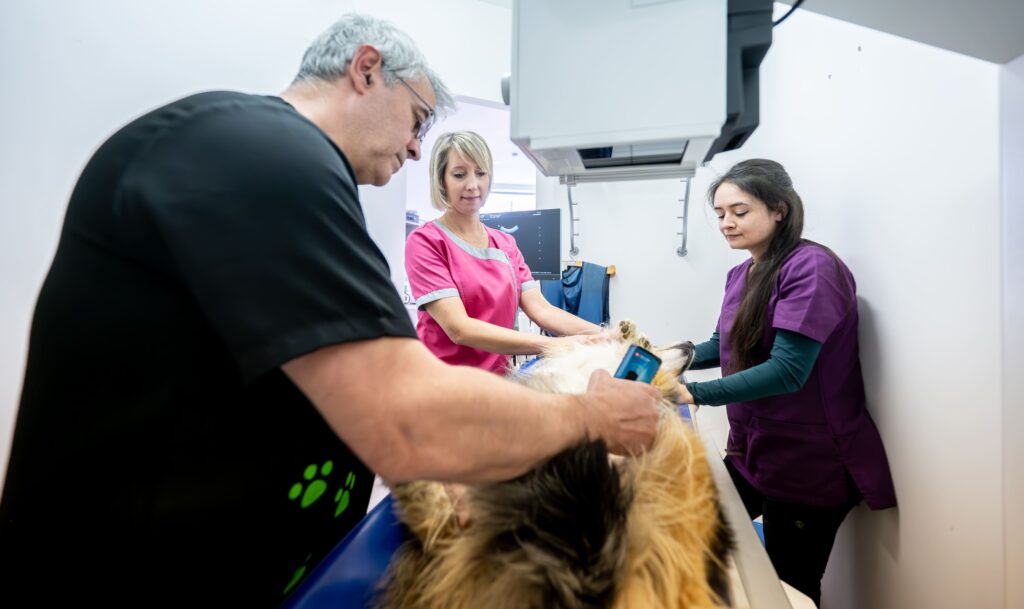 La salle d’imagerie comprend un appareil de radiologie et d’échographie.